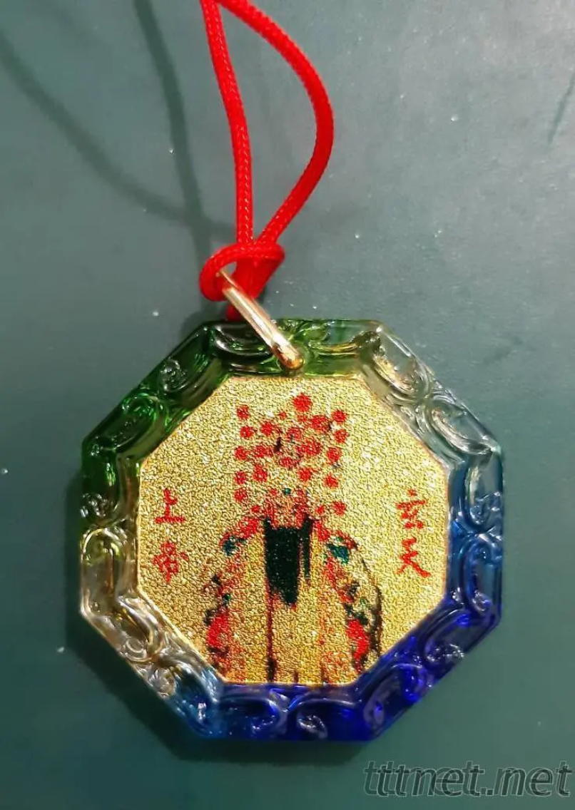 完成品組合:琉璃+雙面彩印金箔+三角環+紅繩