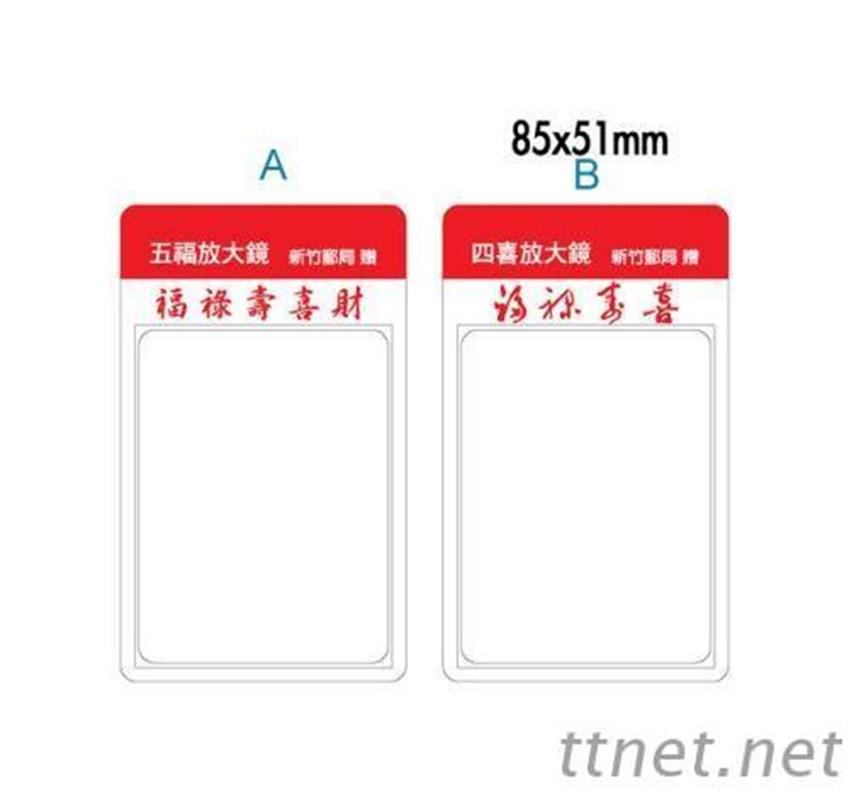 a. 超薄放大鏡款式: 名片全型、名片半型、書籤型、卡片型、閱讀型、軟磁書籤型、全彩紙卡放大鏡。